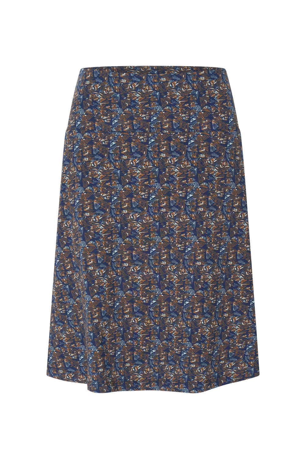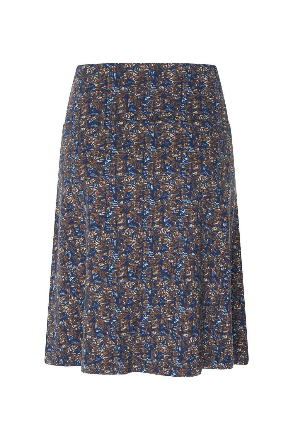 Ein A-Linien-Rock mit einem schönen, breiten Bund am oberen Rand, aus Bio-Baumwolle mit farbenfrohen Prints. Der Rock reicht bis zum Knie bei einer Körpergröße von 1,69 m und ist gefüttert (100 % Viskose).