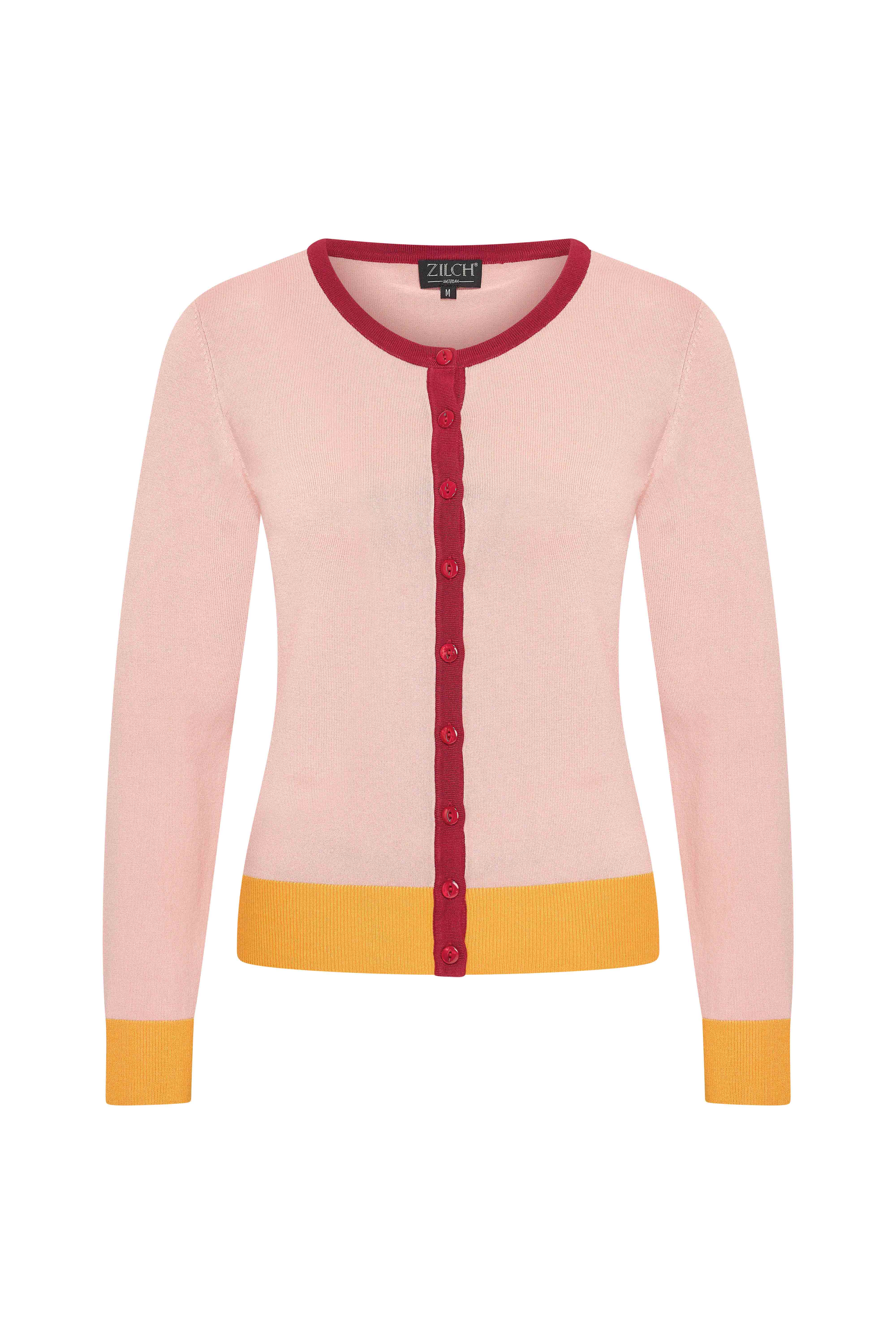Ein wunderschöner, schlichter Cardigan aus Bambusviskose mit Rundhalsausschnitt, breitem Rippstrickbündchen und langen Ärmeln. Dieser hübsche Cardigan von Zilch ist neben diesen beiden tollen Farbkombinationen auch in verschiedenen sommerlichen Unifarben erhältlich.