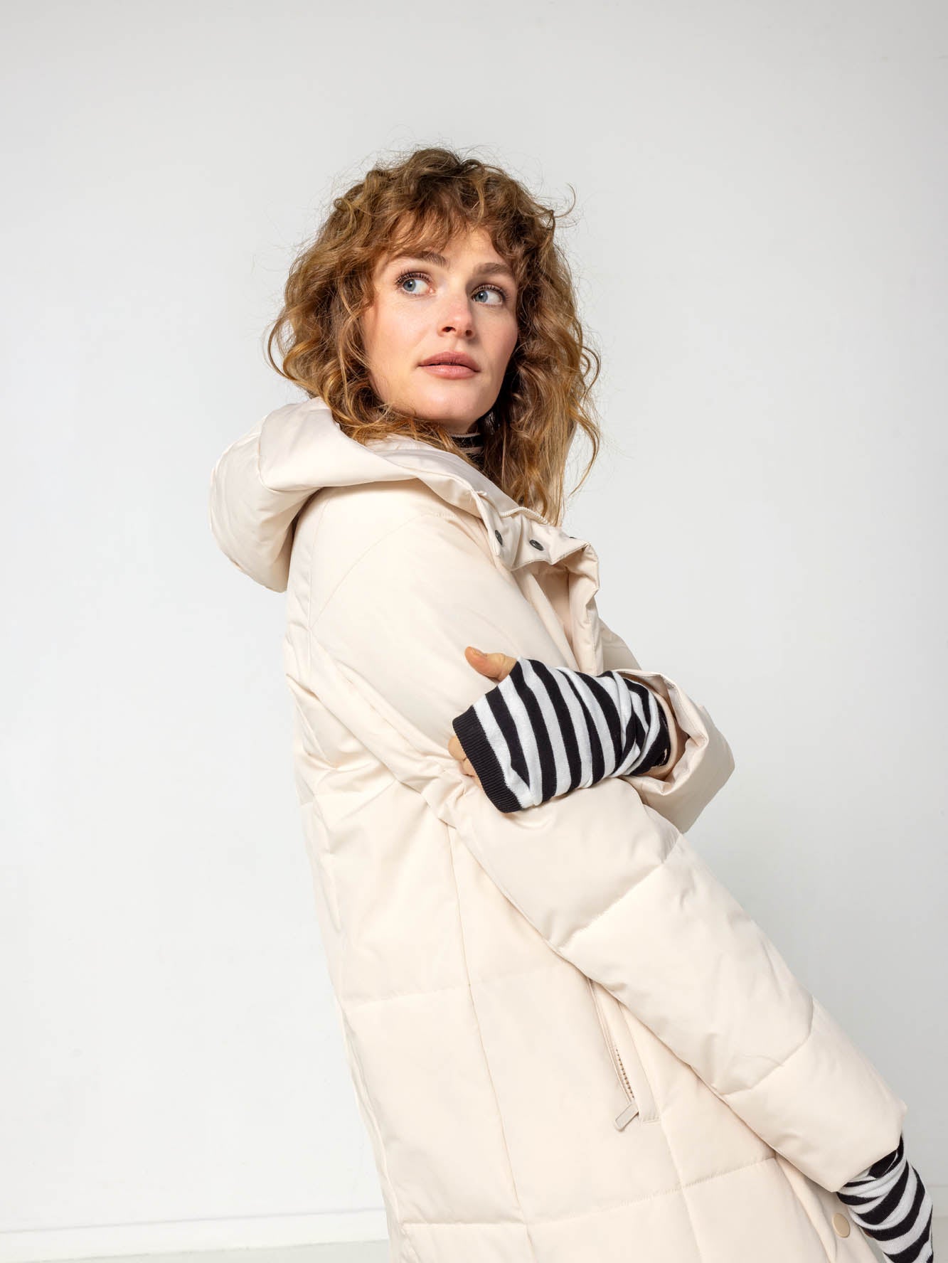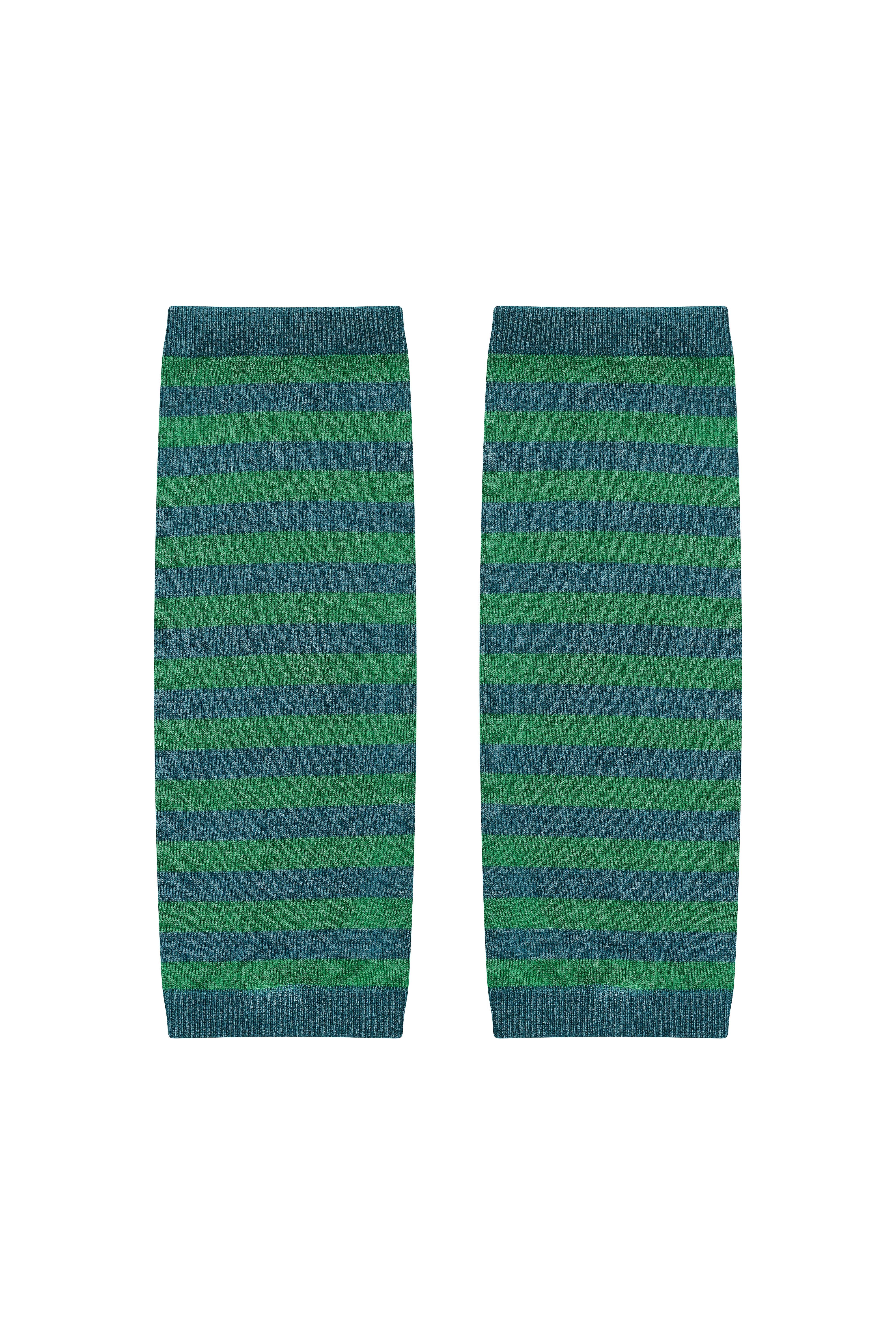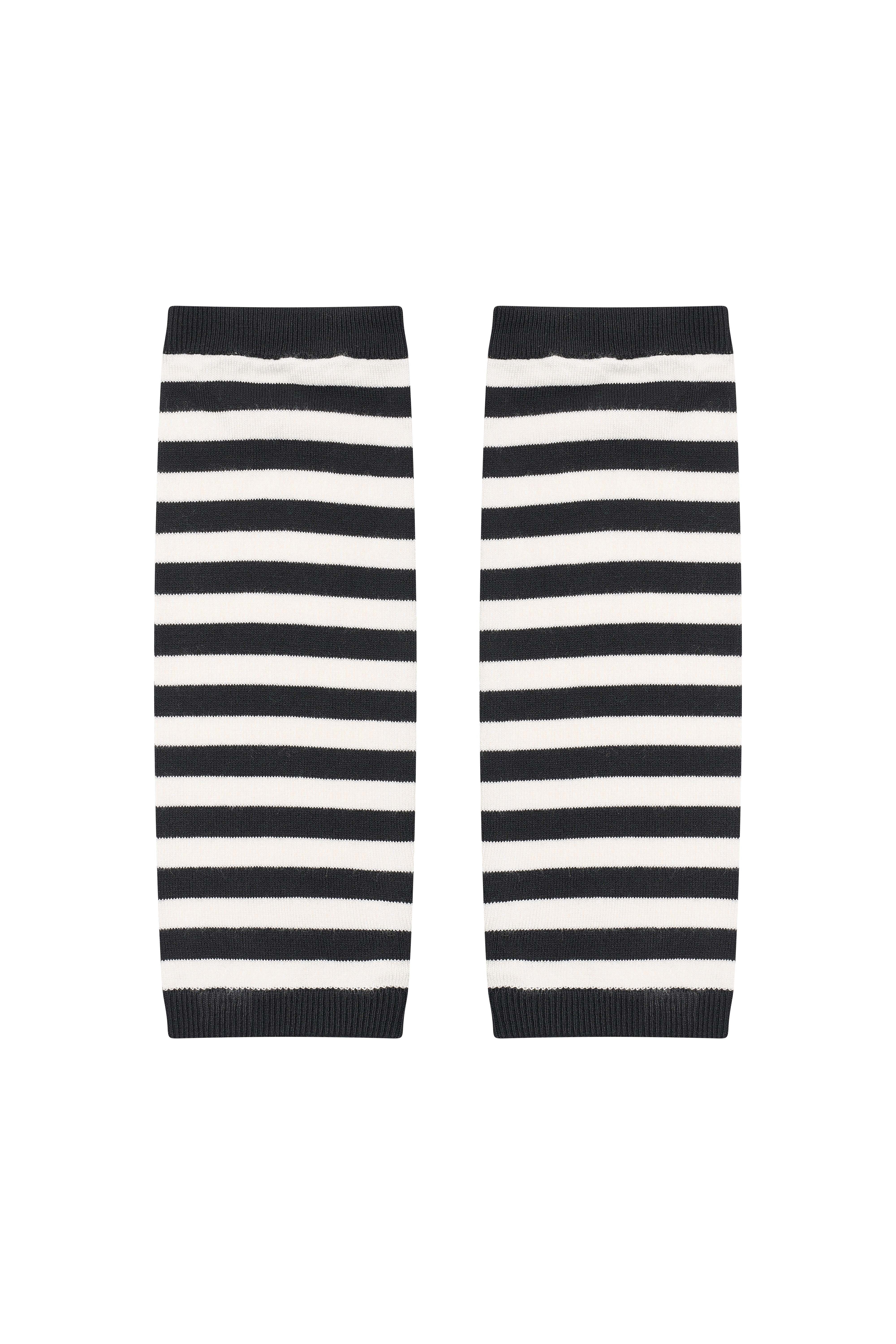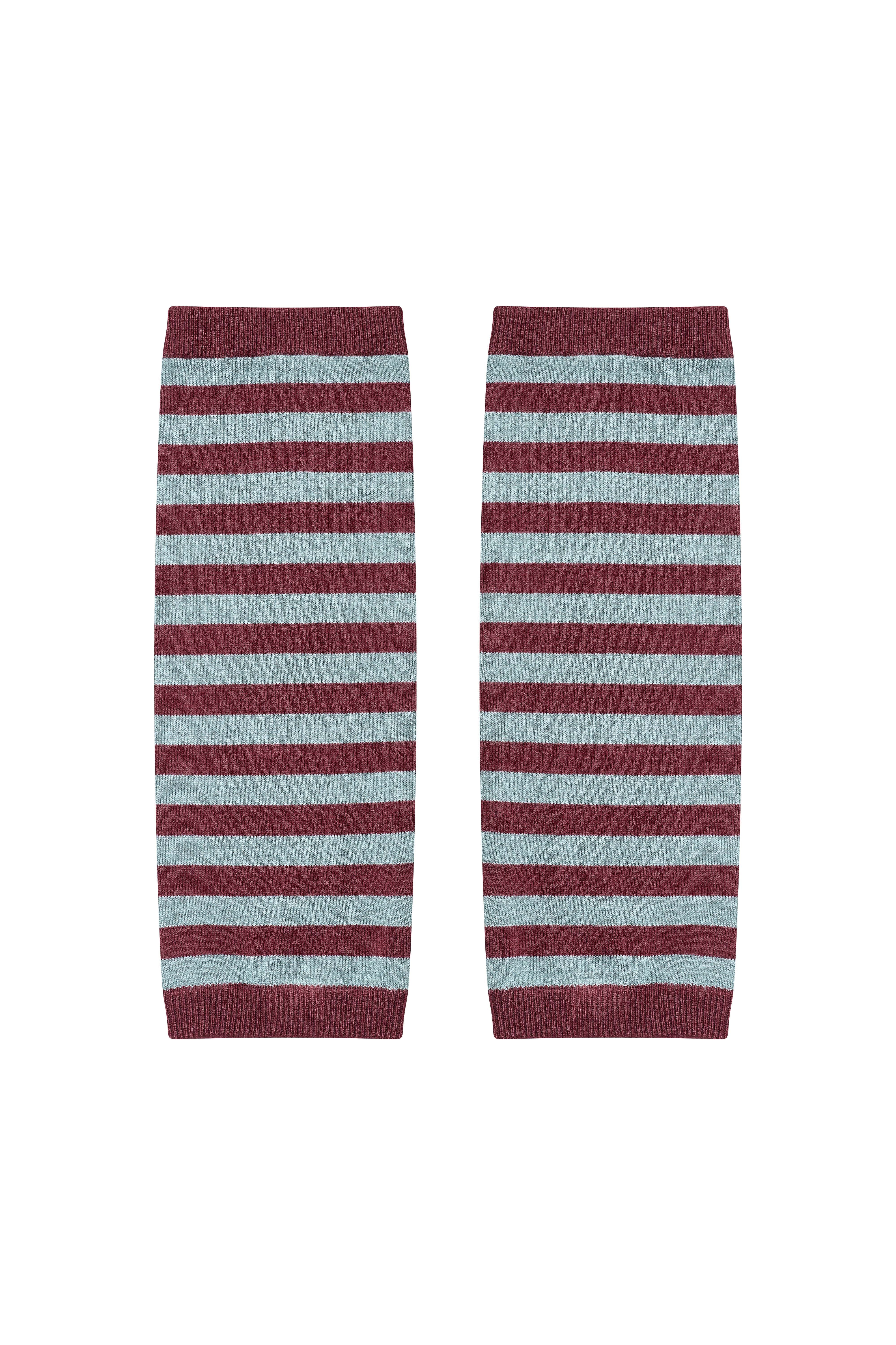 Vervollständigen Sie Ihr winter mit diesen Handgelenkwärmern. Die fingerlosen Handschuhe sind mit einer Borte und einem Loch für den Daumen an der Oberseite versehen und haben ein dekoratives, kontrastierendes Streifenmuster.